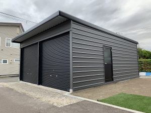 ・・・フルブラック特注2台用ガレージ(横壁仕様)・・・