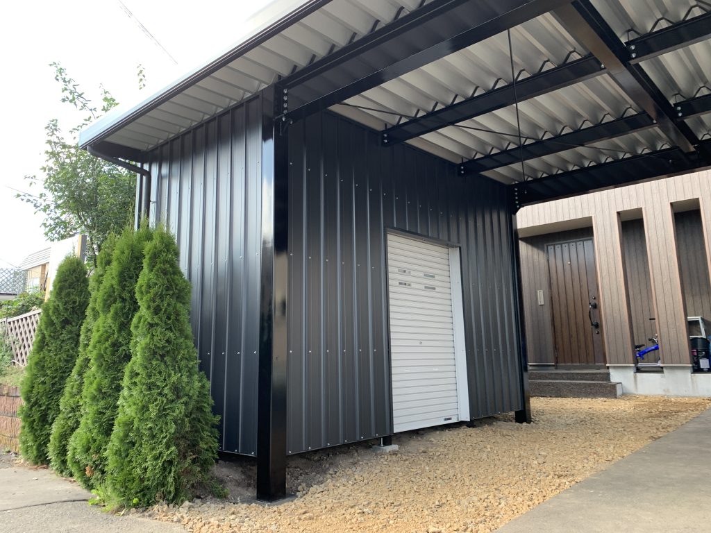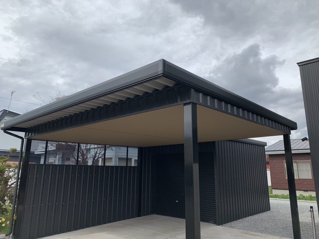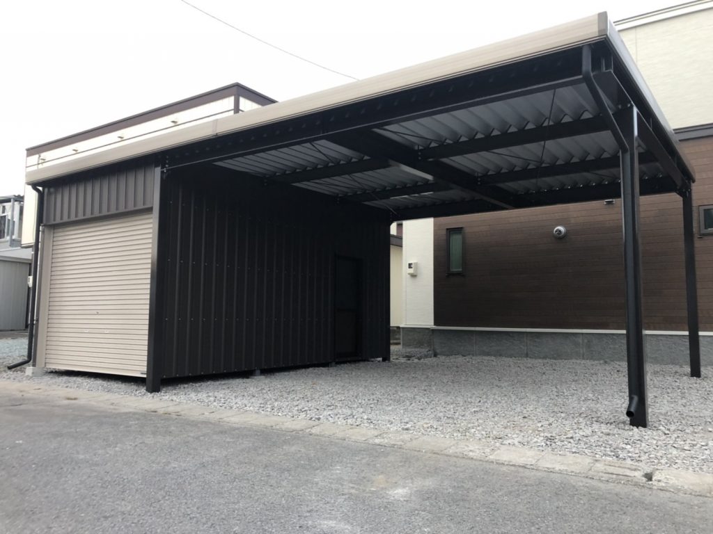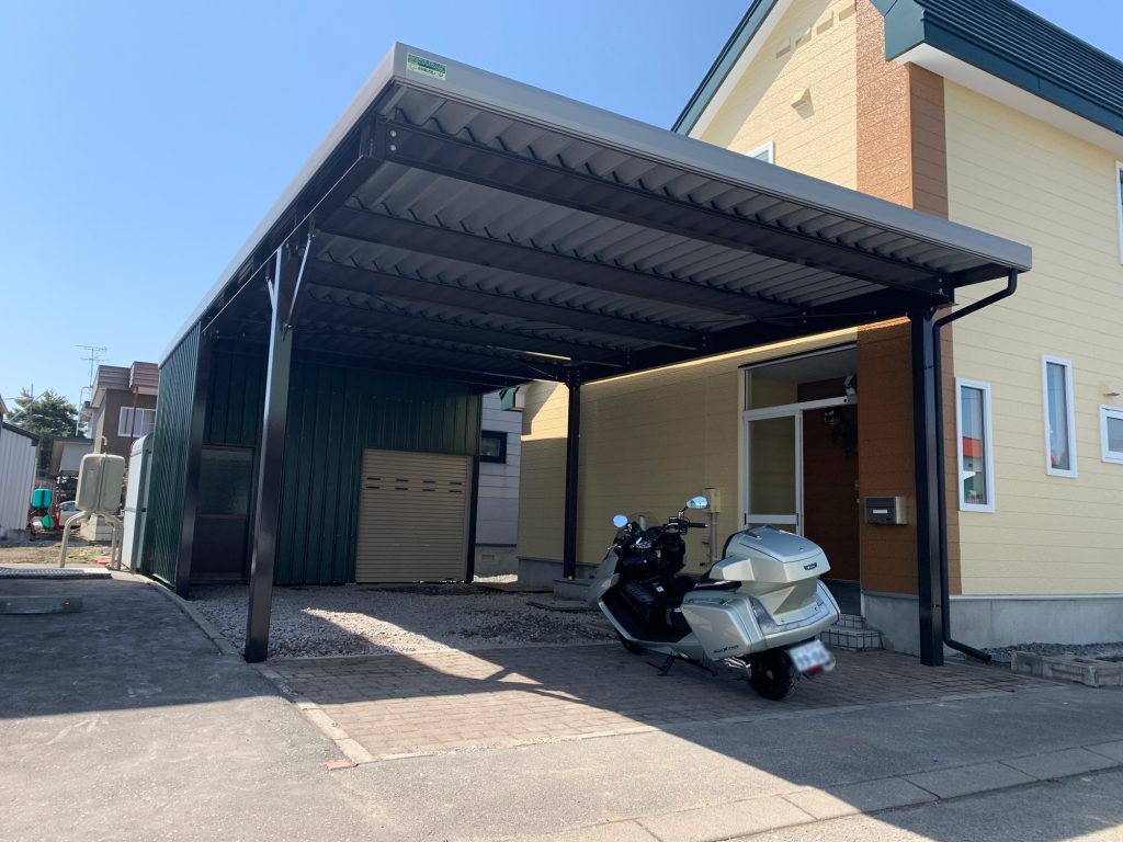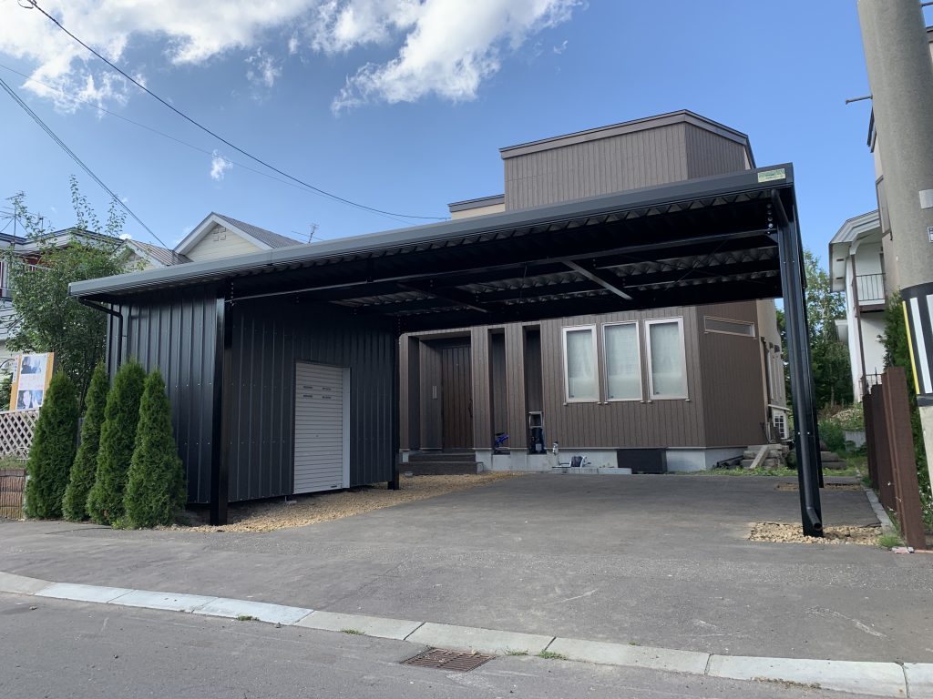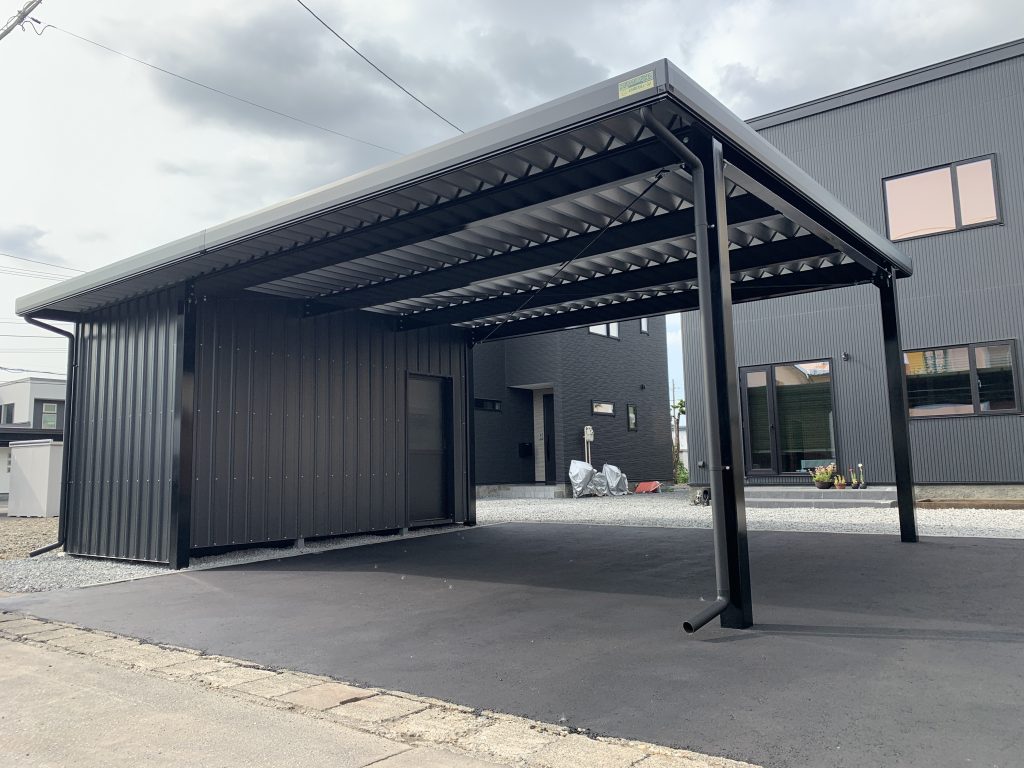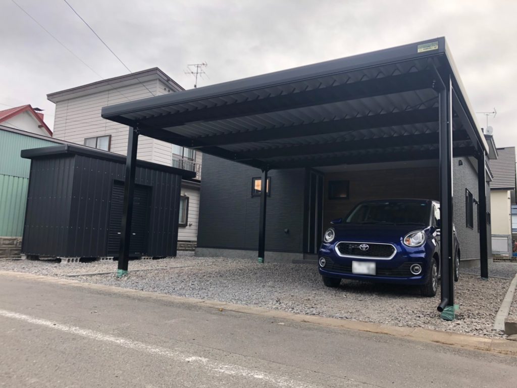 札幌施工 2台用ワイドカーポート+ストレージ -