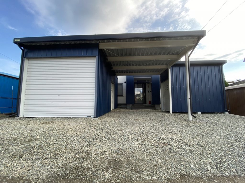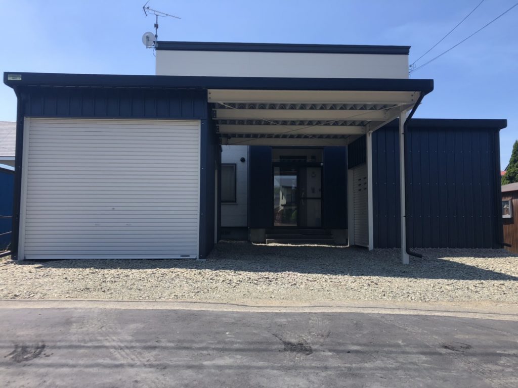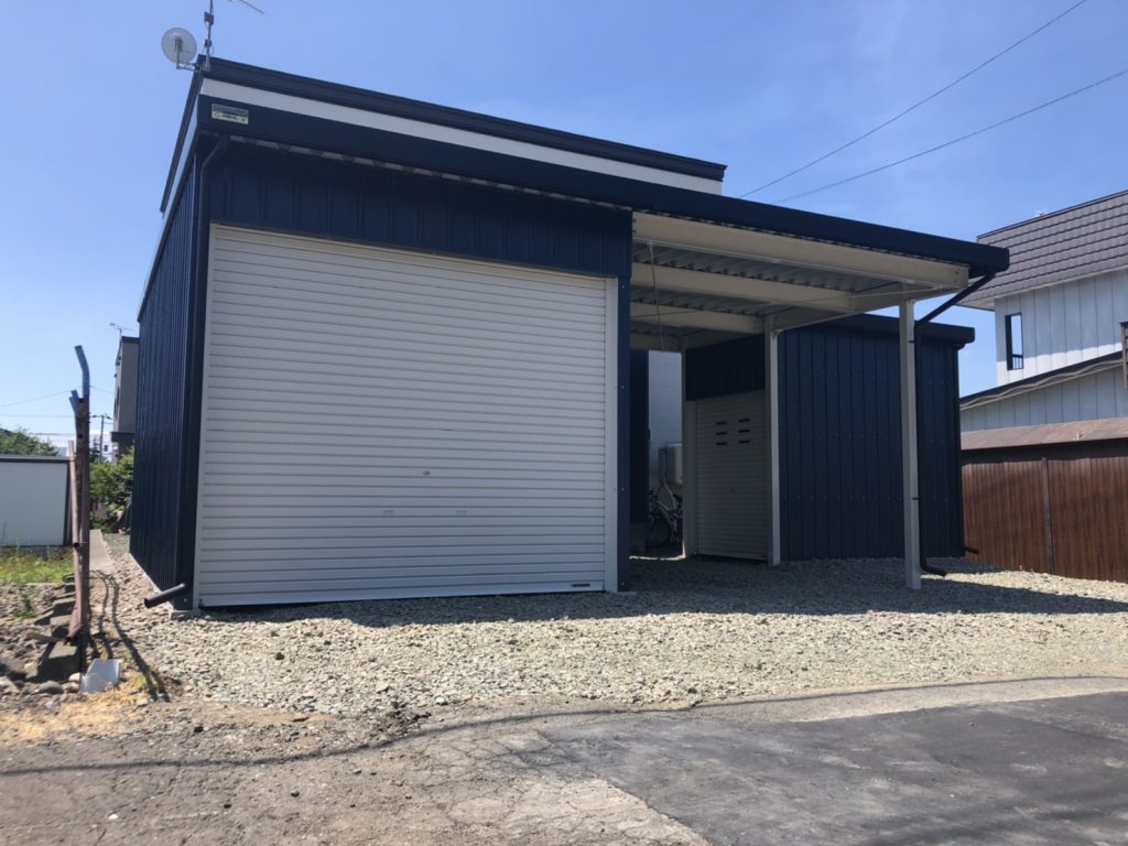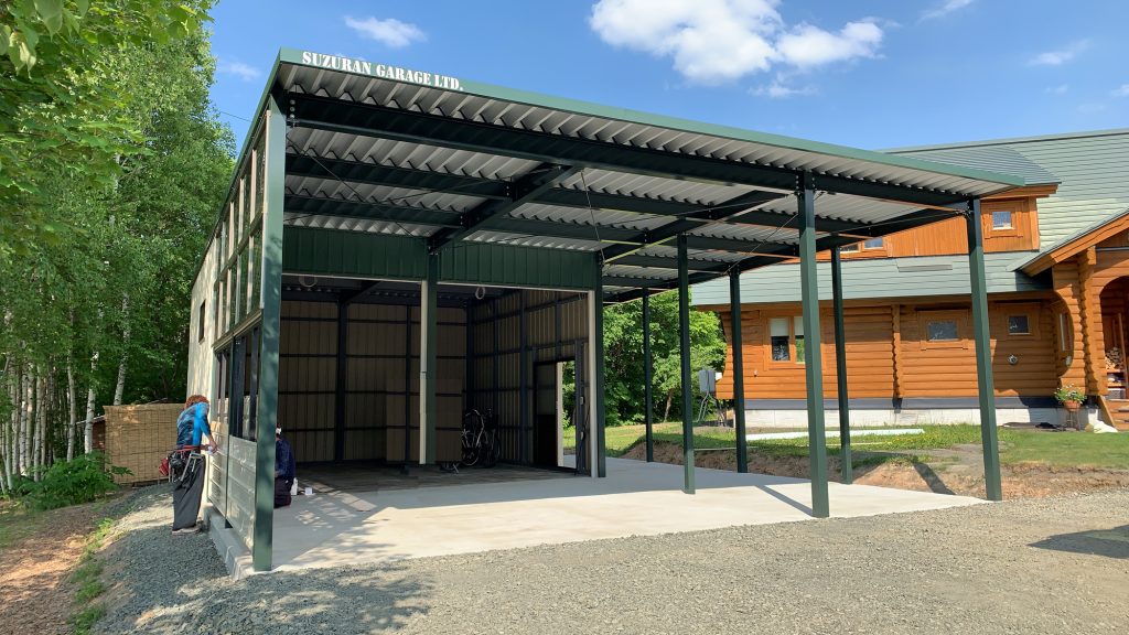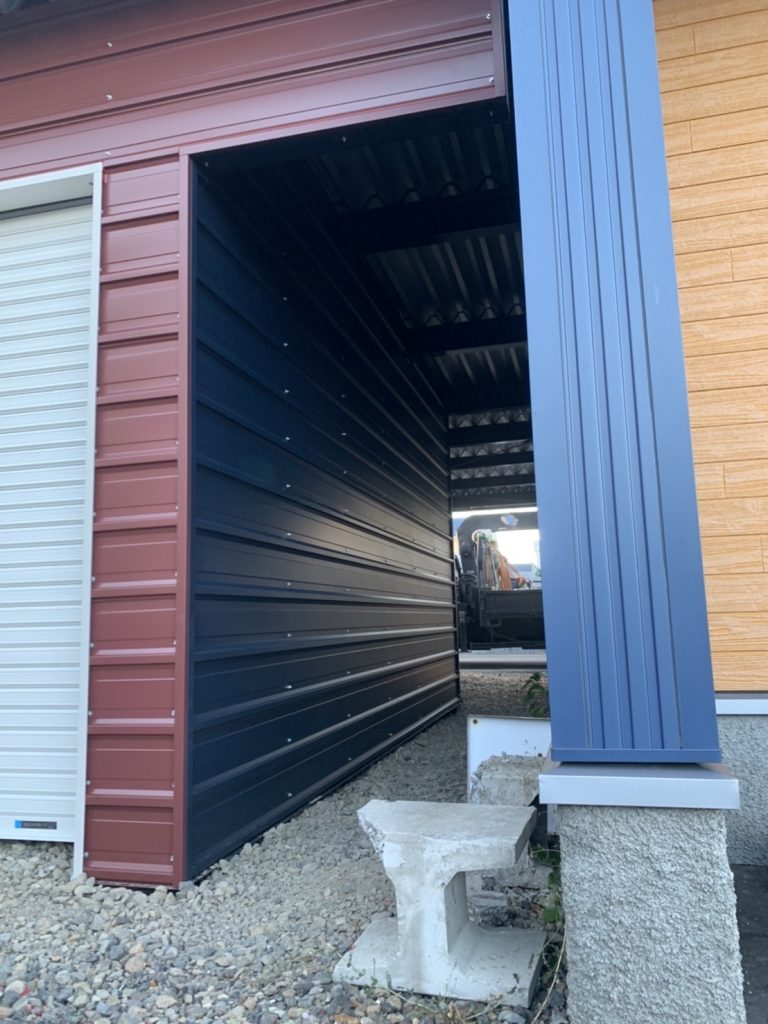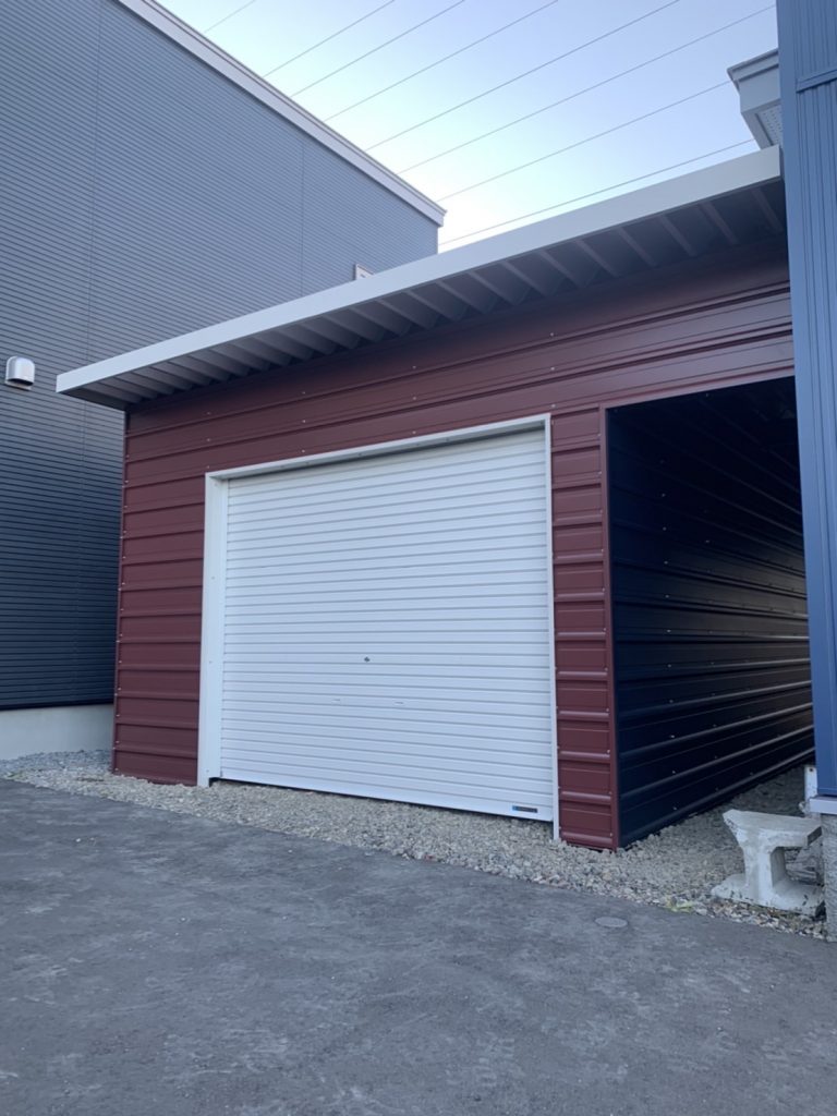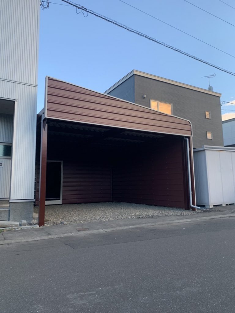 富良野施工 1台用ガレージ+アプローチカーポート+ストレージ+青空スペース -