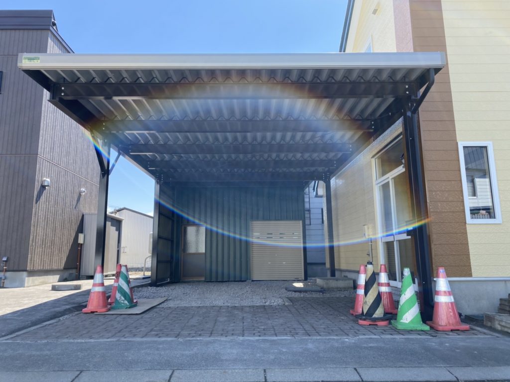 旭川施工 1台用ガレージ+Sパネル付き2台用カーポート -