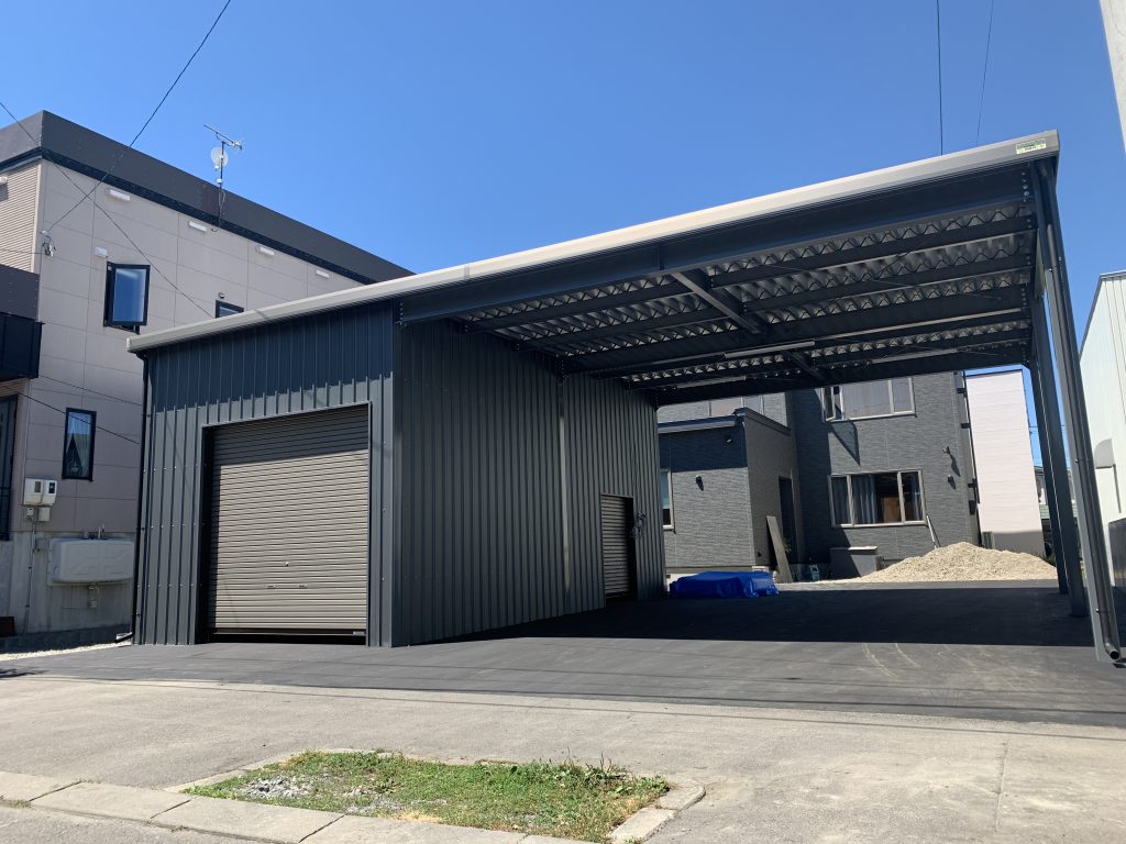 美瑛施工 5台分カーポート+2台用ガレージ -