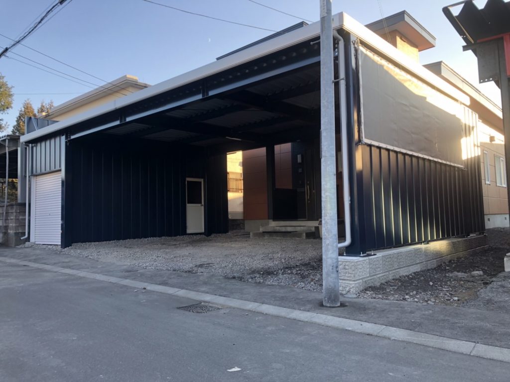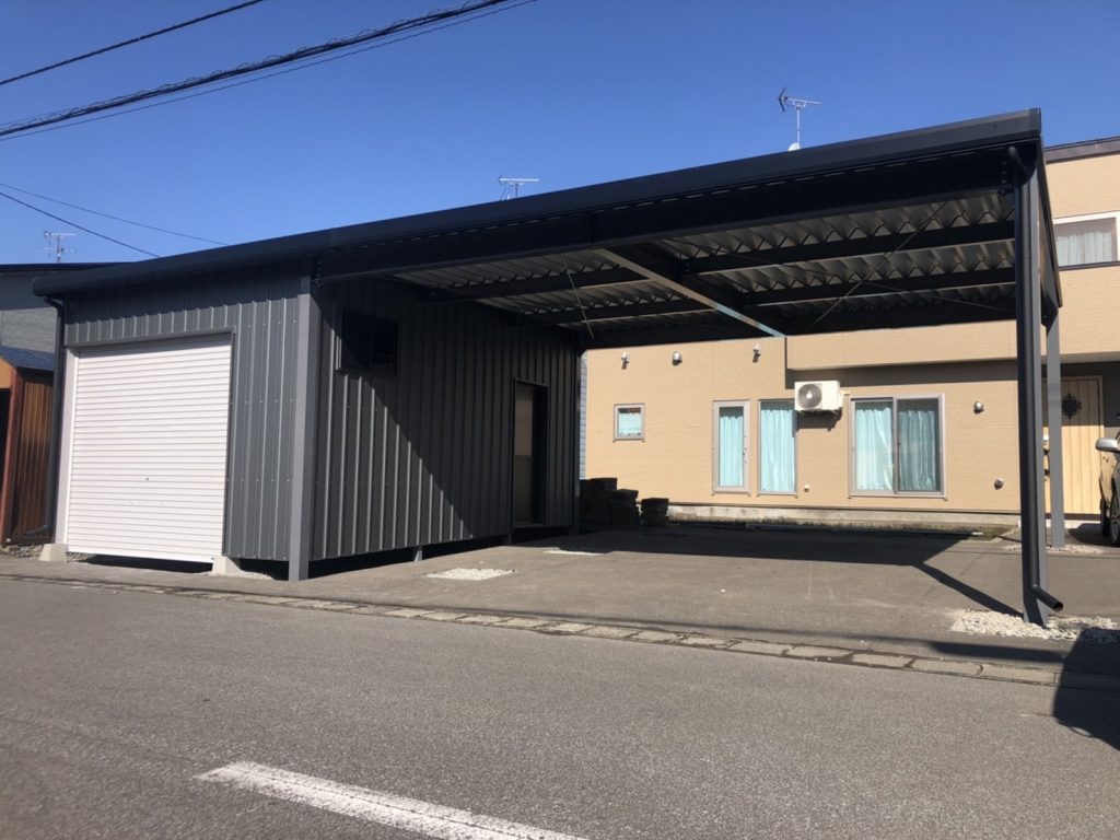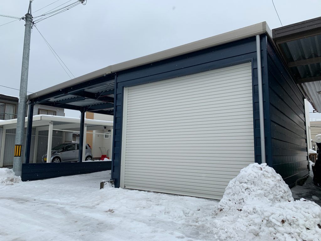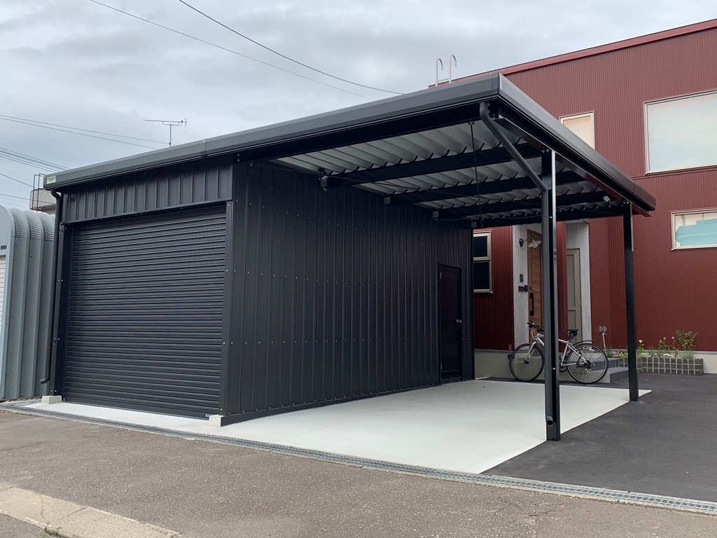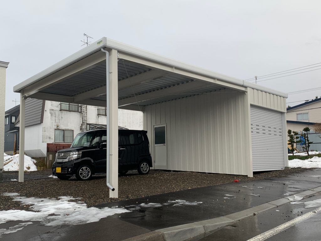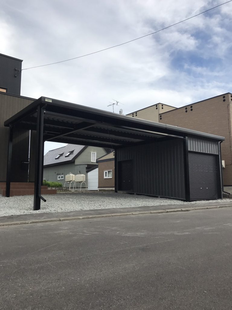 札幌施工 1台用カーポート+1台用ガレージ -